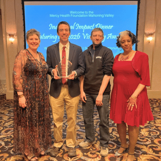 YNDC Executive Director, Ian Beniston, accepted the Continuing the Legacy Award on behalf of YNDC at the Inaugural Mercy Health Foundation Impact Dinner and Visionary Awards at Stambaugh Auditorium. The Visionary Awards recognize individuals who make a profound impact in the community in the spirit and mission inspired by the Sisters of the Humility of Mary since 1911, when St. Elizabeth Youngstown Hospital opened its doors. The awardees provide an example of the mission to extend the compassionate ministry of Jesus, of their visionary leadership in helping make the Mahoning Valley a healthier place, and of their exceptional stewardship of the resources provided by Mercy Health Foundation Mahoning Valley. Thank you to the Mercy Health Foundation of the Mahoning Valley for the recognition!