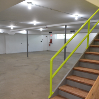 includes a loading dock as well as a conveyor belt between the basement and