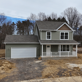 This newly constructed 1,638 square foot, three-bedroom, two and one half-bathroom home features a sprawling front porch, spacious open concept living, dining, and kitchen area, first-floor laundry, second-floor bedrooms, and a detached two-car garage. The full basement is both waterproofed and insulated. Refrigerator, range, microwave range hood, dishwasher, washer, and dryer are included with purchase. Concrete driveway installation and grading and seeding of yard to be completed by builder as soon as weather allows.